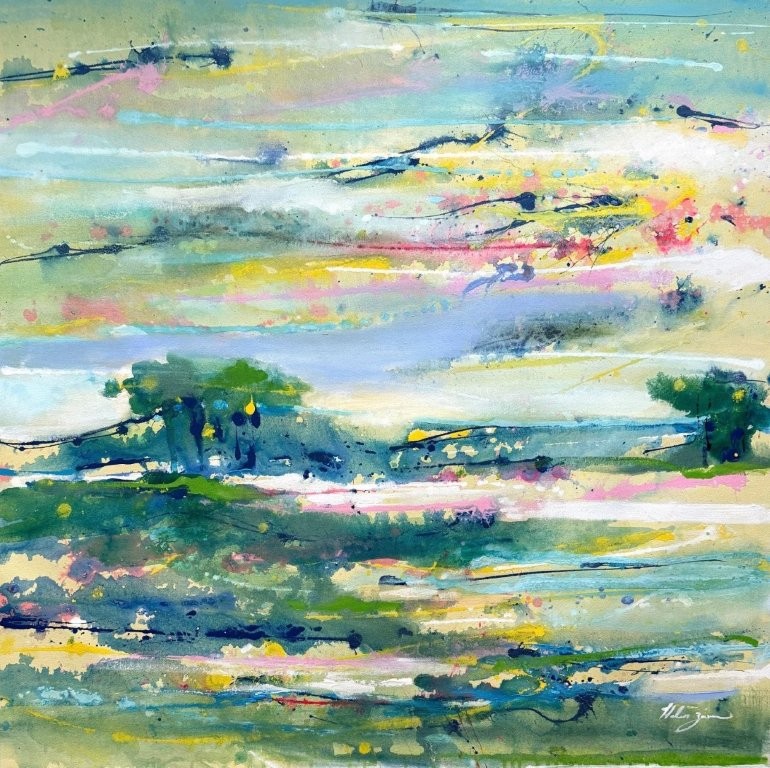 Zarin’s paintings coerce the viewer to engage her works and command one’s attention. The swaths of bold colors tempestuously sweeping across each canbas coalesce in the finality of her penultimate and ultimate brush strokes into work of compelling sophisticaiton.